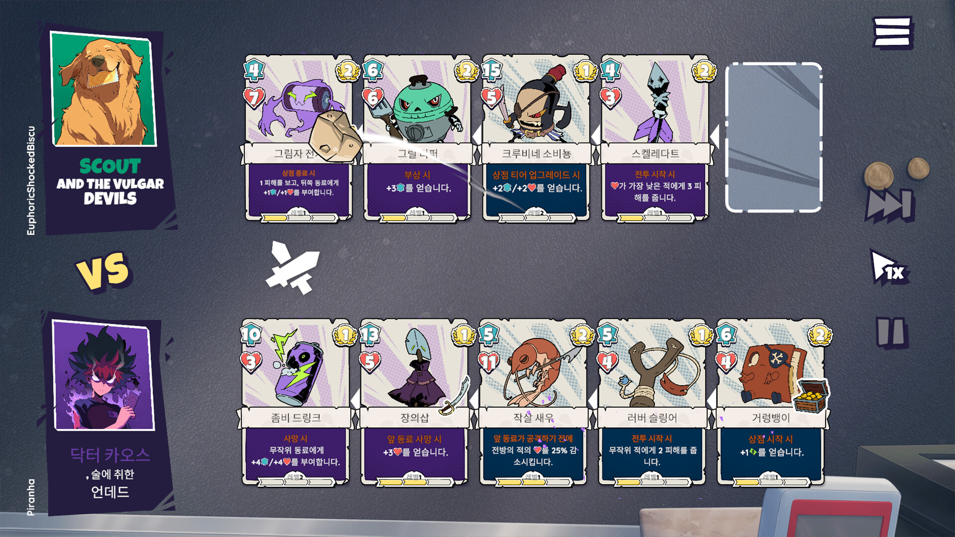 Lunchbreak Tactics 는 정신없는 마트 창고를 배경으로 펼쳐지는 전략 오토 배틀러 카드 게임입니다. 카드를 드래프트하고, 분대를 효율적으로 구성하고, 기상천외한 시너지를 구축해 다른 플레이어와 비동기 방식으로 대결하세요. 타이머 없이 빠른 플레이, 무한 콤보 및 리플레이를 즐기면서 나만의 방식으로 랭크를 올려보세요!